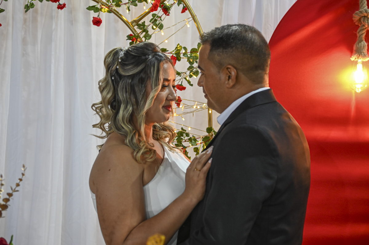 Vanda Costa, de 40 anos, provou ter uma história capaz de fazer inveja aos melhores filmes de romance. Disse ter conhecido seu parceiro, Tiago Lima, de 37, em meio a uma chuva torrencial. Com menos de um mês de relacionamento, já estavam morando juntos. Desde então, são inseparáveis. Agora, depois de 12 anos, decidiram oficializar com o casamento o que sentem um pelo outro: amor.