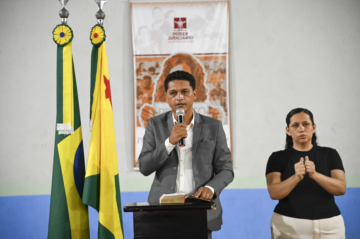 Na sua primeira cerimônia de matrimônio, o juiz de Direito Zacarias Neto, titular da Comarca de Manoel Urbano, reforçou com os noivos o compromisso de prevenir e combater a violência contra à mulher. Ainda recitou um trecho do livro “O Pequeno Príncipe”, para ilustrar a importância do cuidado nas relações conjugais.