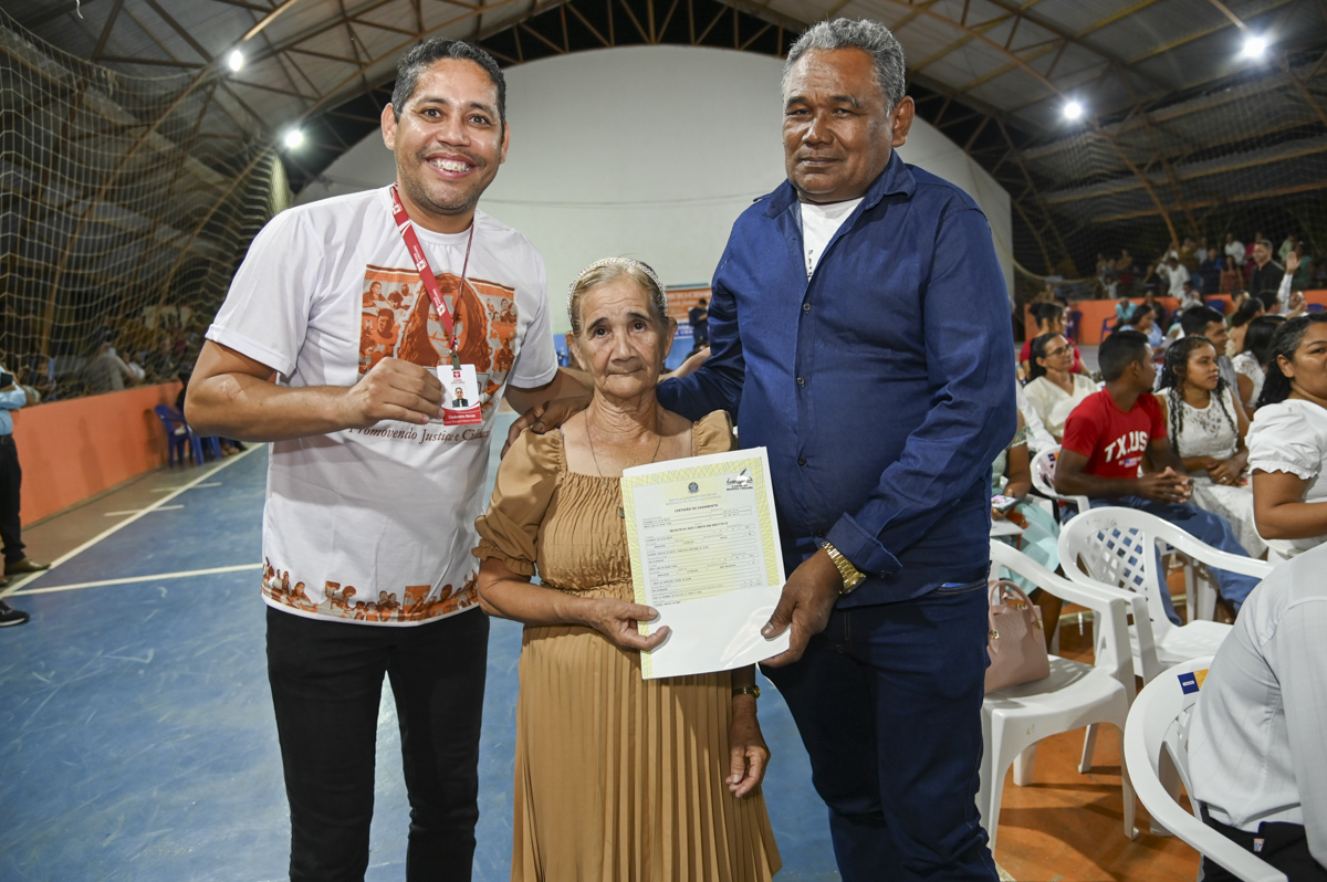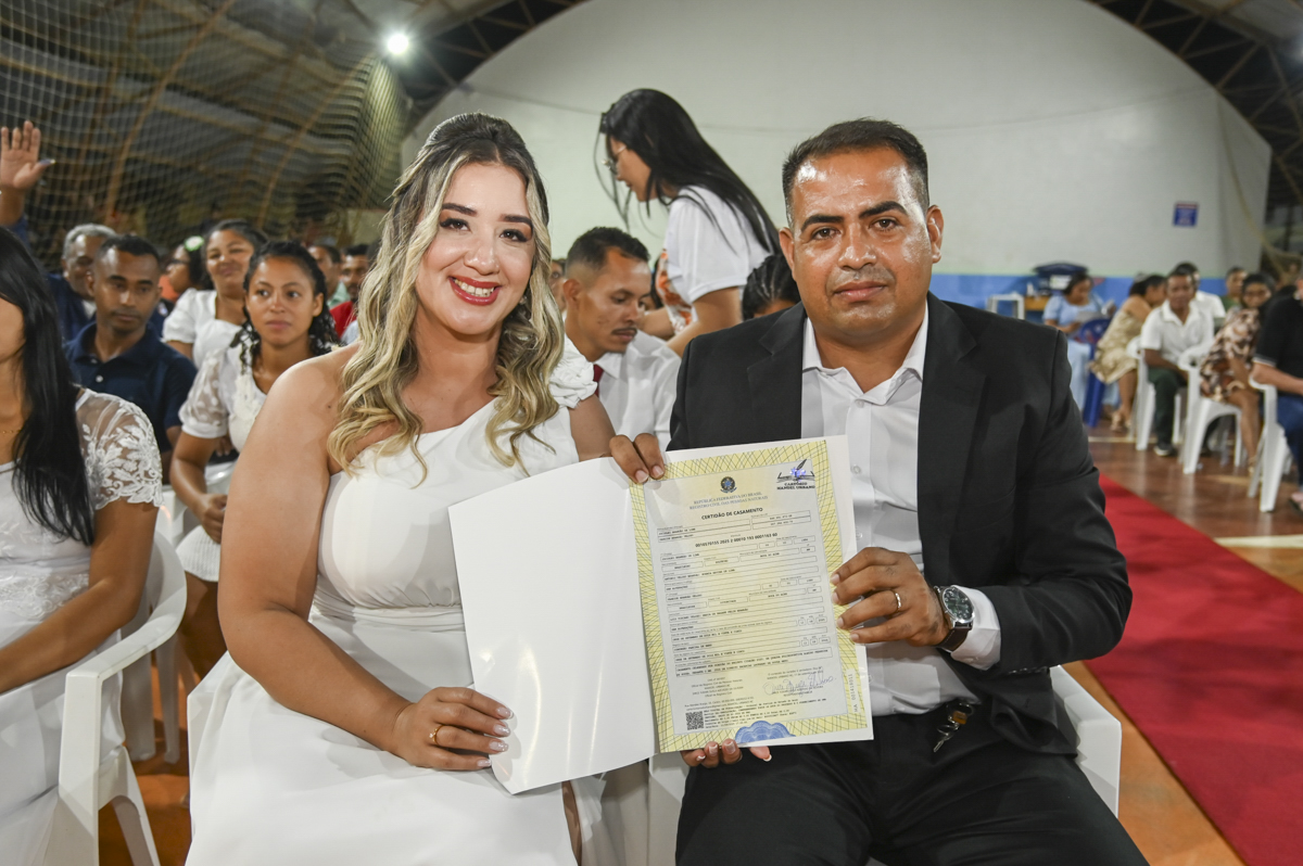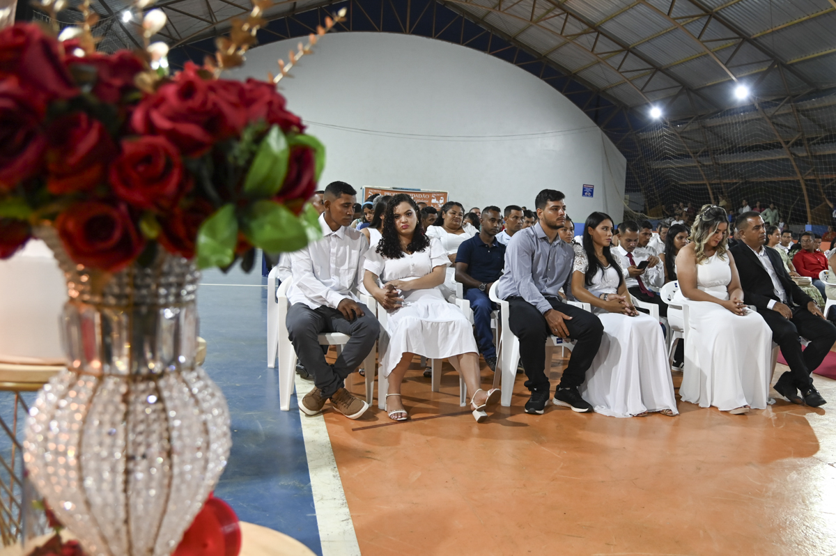 Cerimônia ocorreu na quinta-feira, 11, na Quadra Poliesportiva Almiro Ferreira de Souza; toda documentação foi oferecida gratuitamente as noivas e noivos