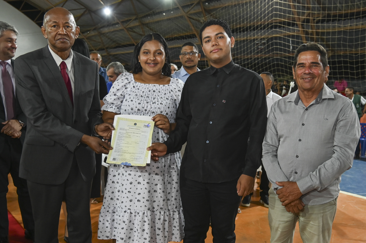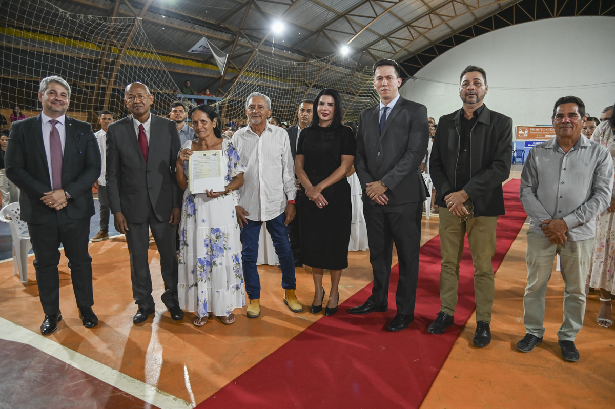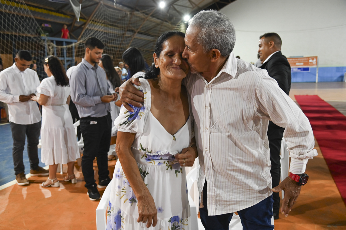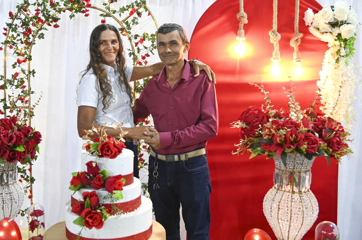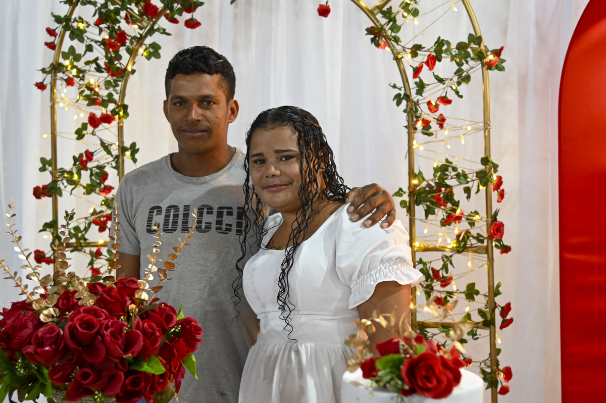 “Como casal, a gente espera envelhecer juntos. Só na morte separar”, declarou a produtora rural Rita de Cassia Oliveira, de 27 anos, minutos antes de oficializar a união com o seu companheiro Jhone Costa, 27. Momentos depois, ainda na cerimônia, eles realizaram um outro sonho: receberam o título definitivo da propriedade rural onde moram, concedido pelo Instituto de Regularização Fundiária (Incra).