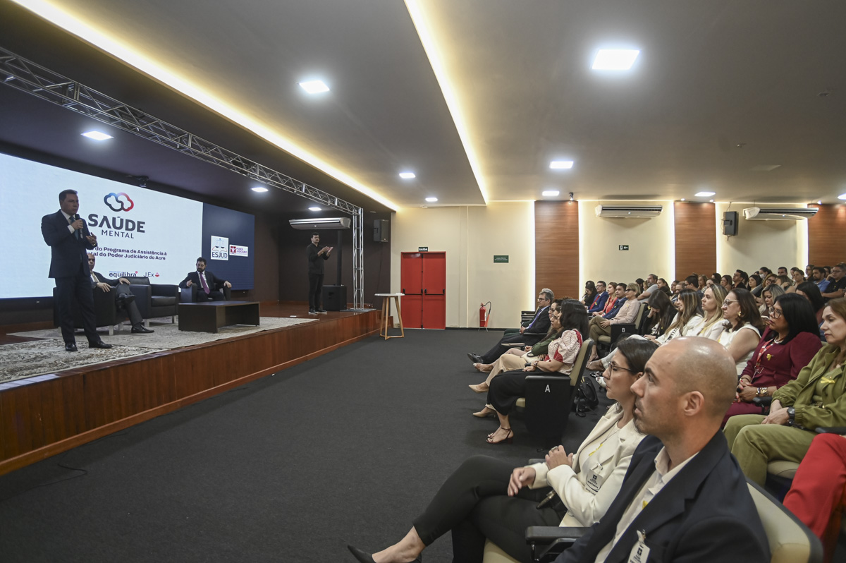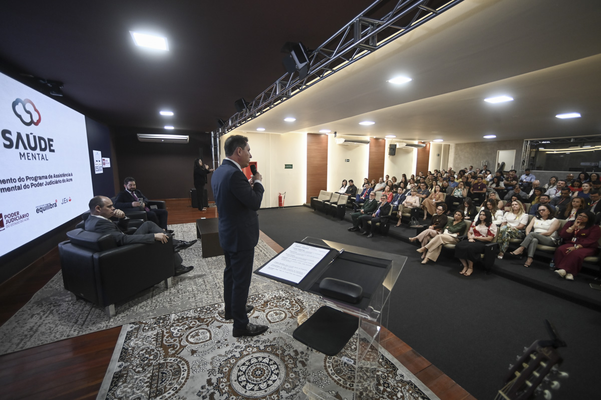 O Poder Judiciário do Acre (PJAC) realizou, na manhã desta segunda-feira, 15, o lançamento oficial do Programa de Assistência à Saúde Mental, em cerimônia no auditório da Escola do Poder Judiciário (Esjud). A iniciativa é inédita em termos de abrangência e estrutura, posicionando o Acre como pioneiro na implementação de um programa desse porte, focado no bem-estar de servidoras e servidores. O evento contou com linguagem acessível, tradução em Libras e ampla participação de magistradas e magistrados, servidoras e servidores.