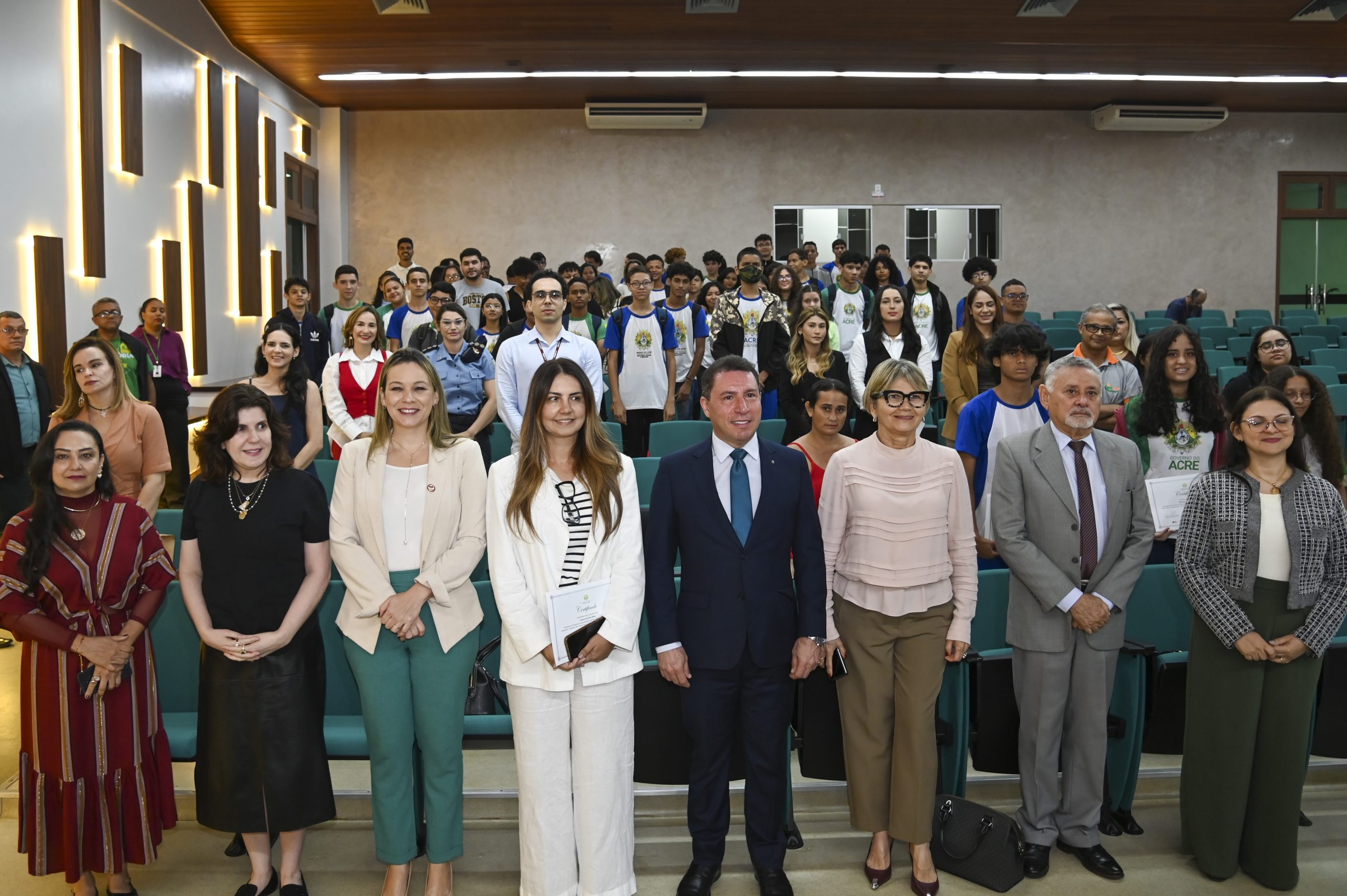 Solenidade ocorreu nesta segunda-feira, 15, às 9h, no auditório da Secretaria de Educação, em Rio Branco; houve também a premiação do concurso de redações