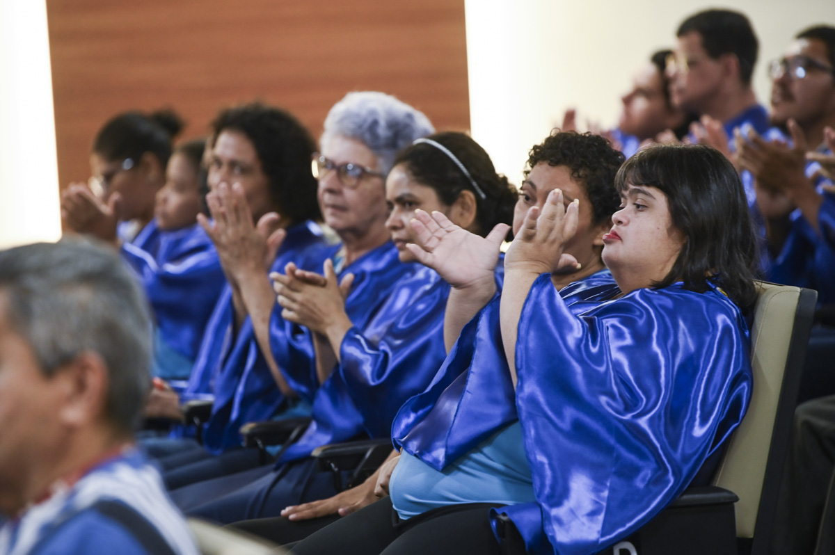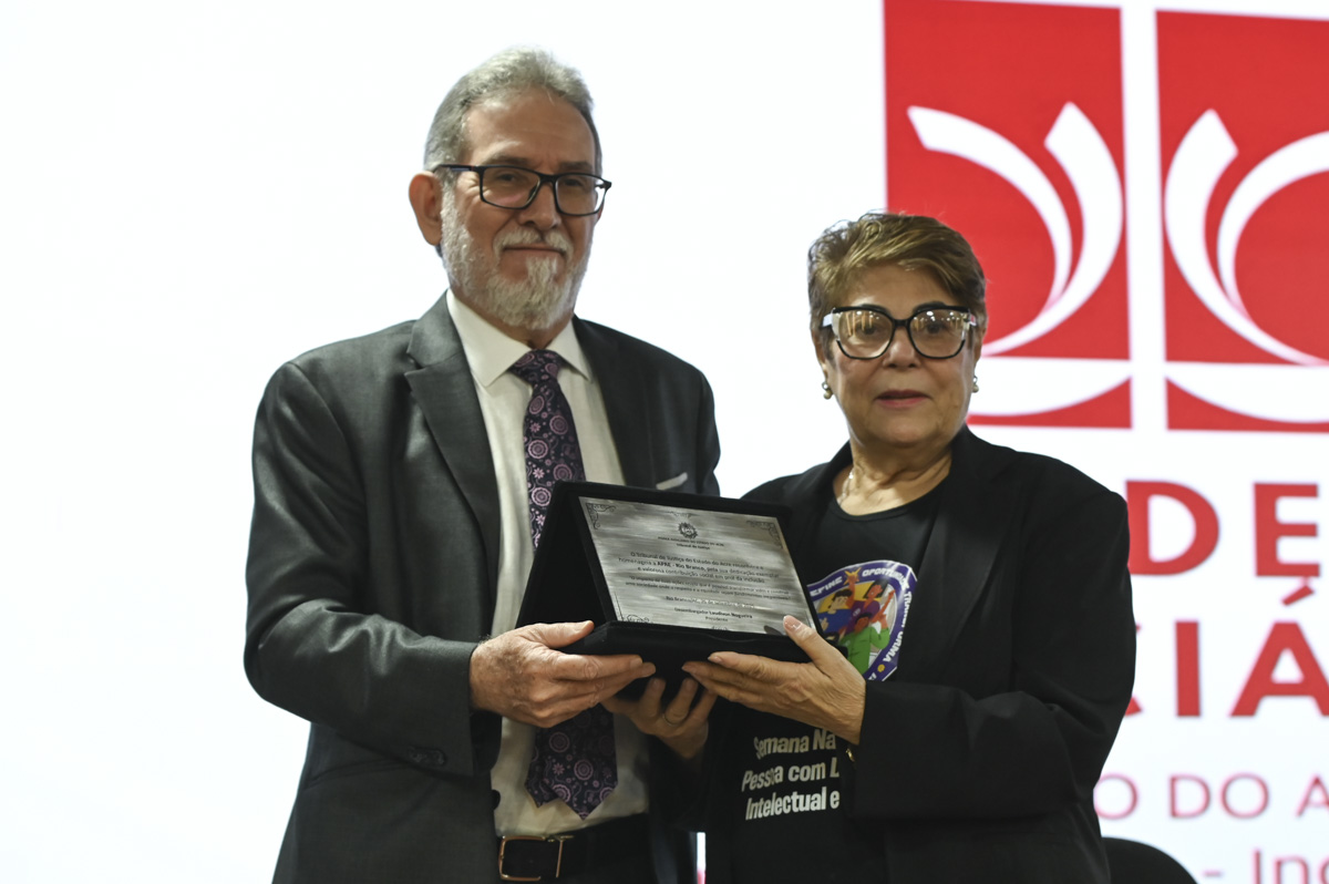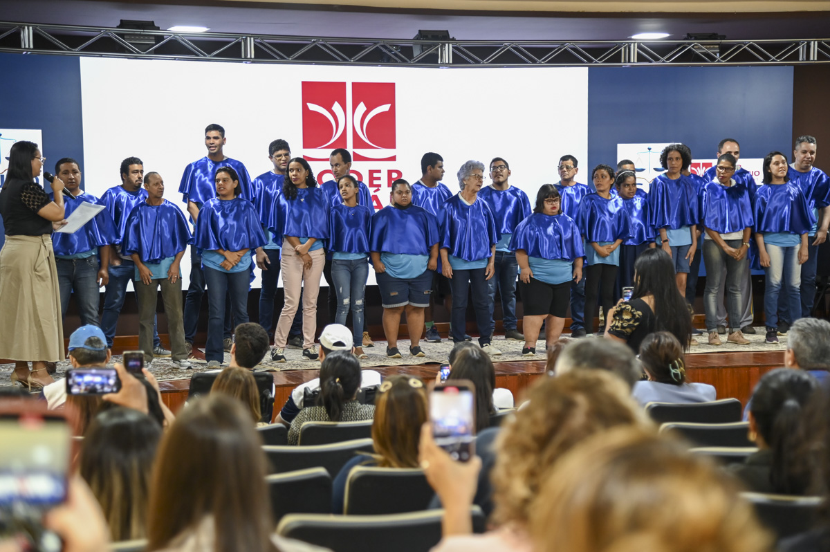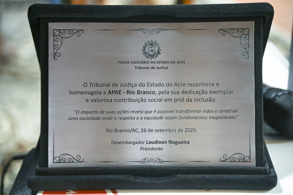Durante o ato, o TJAC entregou uma placa de homenagem à Apae e a Associação deu um certificado de agradecimento ao Tribunal de Justiça pelo apoio e parceria. E encerrando o ato, o coral Vozes Angelicais composto de alunas e alunos da Apae fez sua estreia no auditório da Esjud, com a música “Aleluia”.