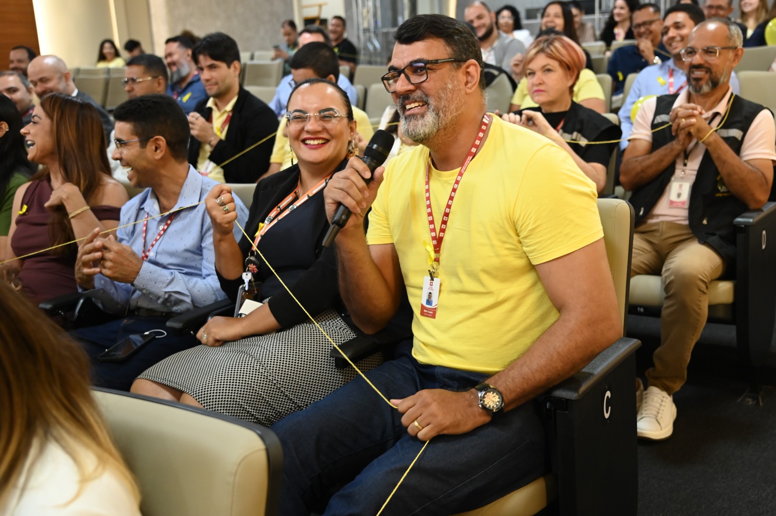 A assistente social Milene Moura propôs que pessoas que estavam passando por dificuldades levantassem a mão. Em seguida, para que as pessoas que querem ser canais de apoio e amor, de igual modo, levantassem a mão. Sabe qual o resultado? O número do segundo grupo foi superior ao primeiro, assim semeando uma mensagem valorosa aos presentes.