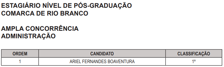 O Tribunal de Justiça do Acre (TJAC) tornou pública a convocação de estagiários nesta terça-feira, 21. Foram chamados aprovados das áreas de Administração, Ciências Contábeis, Direito e Sistema de Informação, ainda foram chamados nível pós-graduação na área de Administração e Direito. Todos serão lotados em Rio Branco.