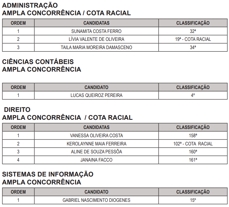 Confira as listas: