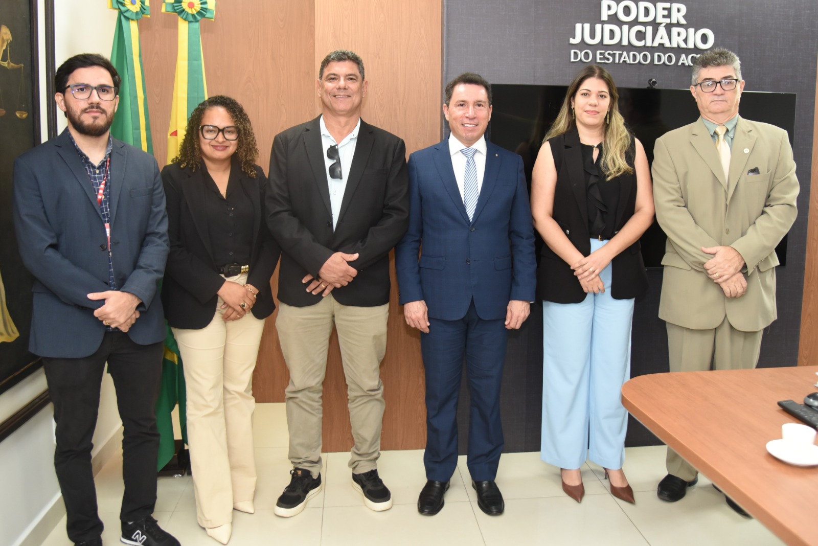 A agenda do presidente do TJAC, desembargador Laudivon Nogueira, nesta terça-feira, 21, incluiu reunião com representantes do Instituto de Terras do Acre (Iteracre). Com a presença da presidente Gabriela Câmara e equipe, o dialogo foi pautado pela manutenção da parceria e avanço da regularização fundiária no Estado do Acre. Acompanharam a reunião, o corregedor-geral da Justiça, desembargador Nonato Maia, o juiz auxiliar da Coger, Anastácio Menezes e a juíza auxiliar da presidência Louise Santana.