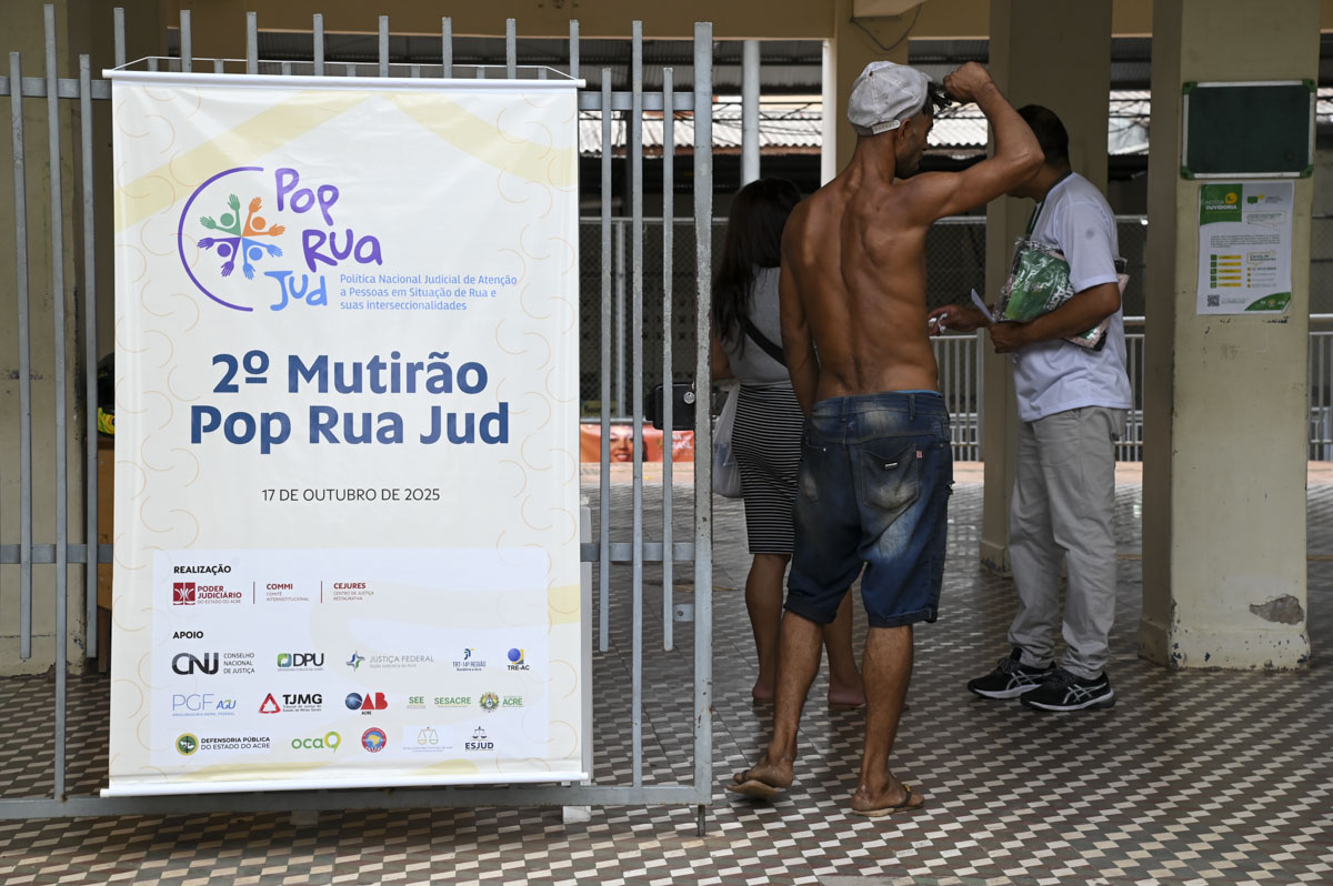 O mutirão de serviços faz parte da programação do II Encontro PopRuaJud, realizado desde quinta-feira, 16, no Tribunal Regional Eleitoral do Acre (TRE/AC), com palestras, debates e diálogos sobre projetos, iniciativas e políticas públicas que precisam ser efetivadas pelo Judiciário, órgãos do sistema de Justiça e setores públicos para garantir direitos às pessoas em situação de rua.
