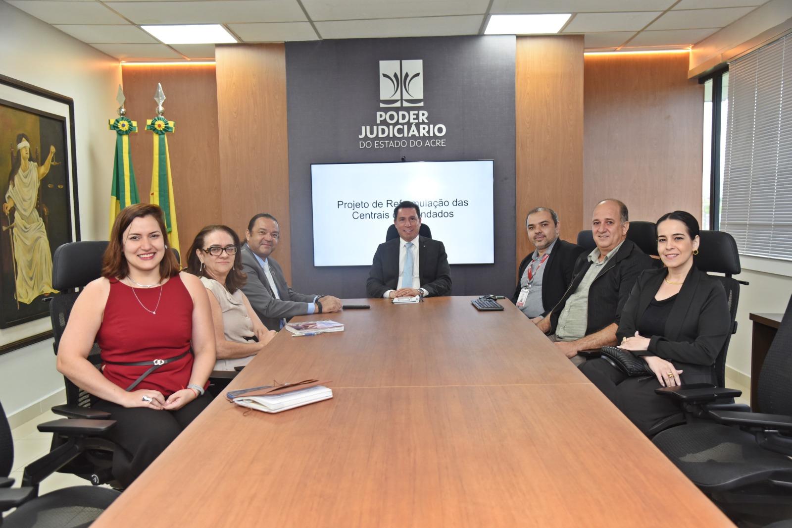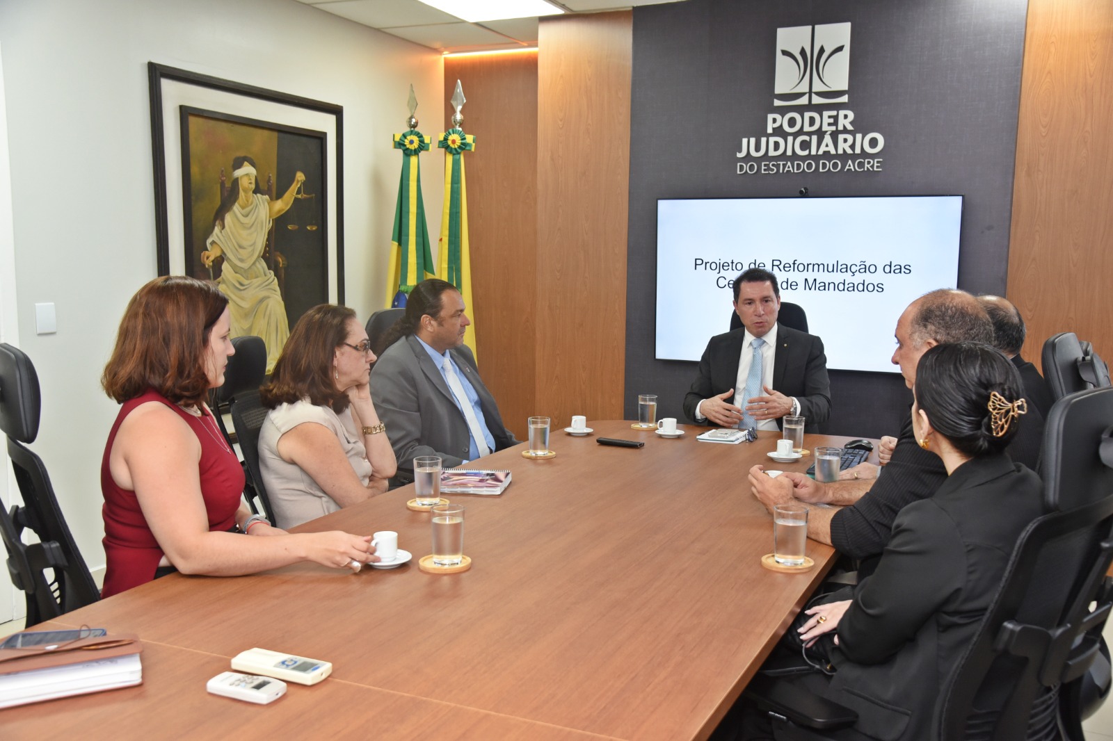 Nesta quarta-feira, 29, o presidente do Tribunal de Justiça do Acre (TJAC), desembargador Laudivon Nogueira, recebeu, representantes do Sindicato dos Oficiais de Justiça do Acre (Sindojus-AC). Além dos representantes da categoria, acompanharam o encontro a juíza Auxiliar da presidência, Zenice Mota, a secretária de Gestão de Pessoas (Segep) Nassara Pires e o assessor-chefe Jurídico Marcel Viana.