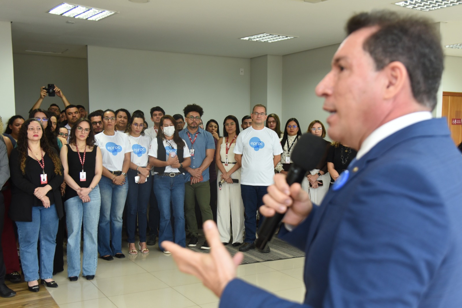 Para marcar essa nova etapa, a Administração do TJAC realizou uma cerimônia no Juizado Especial Cível, na Cidade da Justiça, com a presença de servidoras e servidores das unidades jurisdicionais cíveis. O encontro teve como objetivo apresentar os avanços, benefícios e inovações proporcionados pelo eproc, que tem contribuído para tornar a tramitação processual mais ágil, transparente e eficiente.