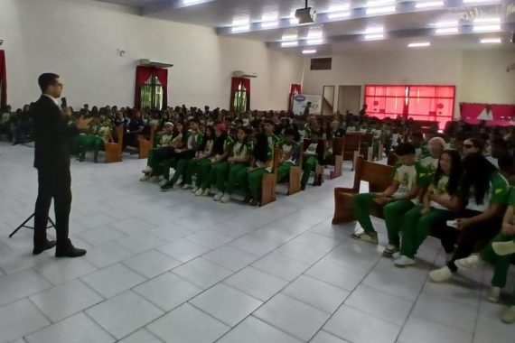 Um dos momentos mais marcantes do projeto foi o evento realizado no Teatro dos Nauas, que reuniu estudantes de quatro escolas em um grande encontro educativo. O espaço ficou lotado, demonstrando o interesse e o engajamento da comunidade escolar no tema.