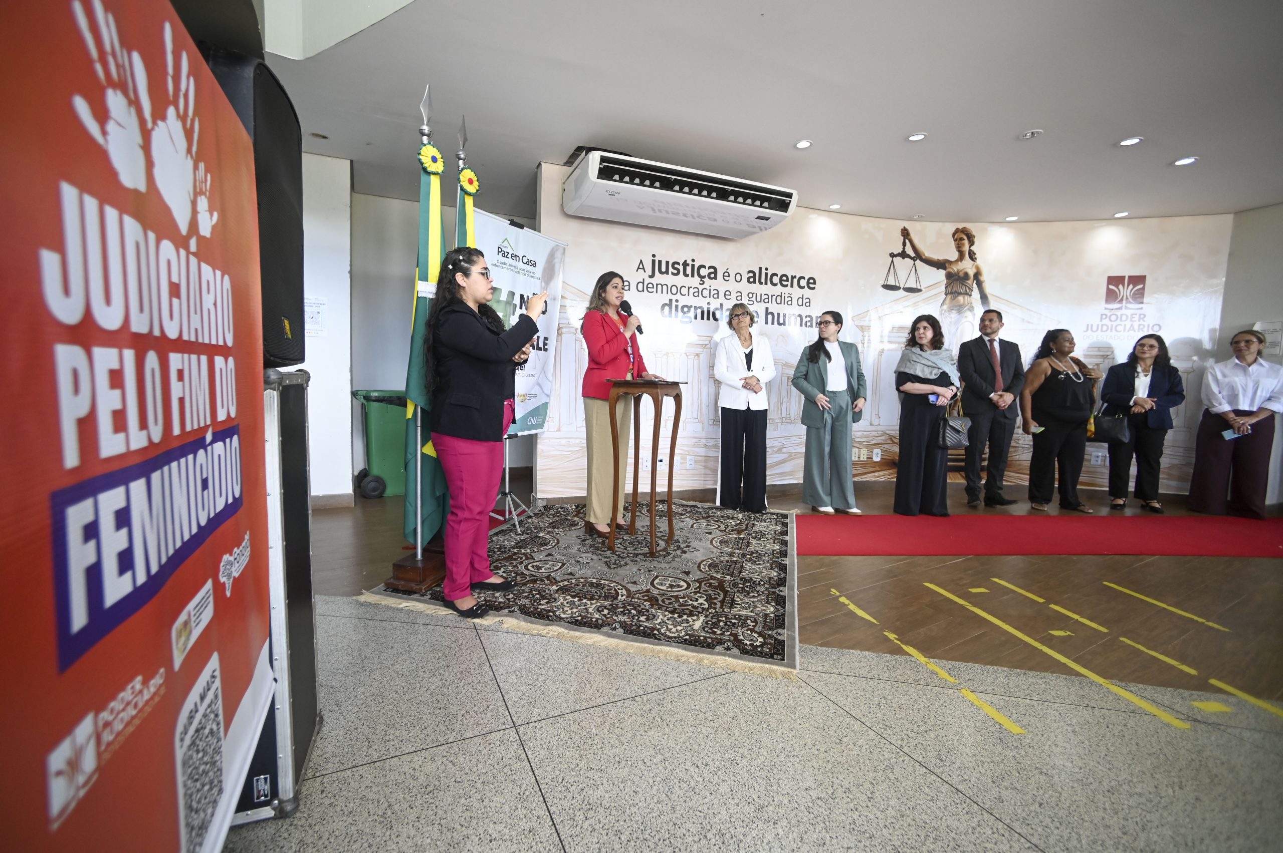 “É muita responsabilidade hoje. É a primeira Semana Pela Paz em Casa em que não foi preciso realizar mutirão. Nós estamos com 200 audiências acontecendo ao longo da semana, e são audiências ordinárias, rotineiras, nas unidades da capital e do interior. Não foi preciso fazer mutirão. Os nossos processos estão sendo julgados com celeridade e alcançamos todos os índices de cumprimento do Conselho Nacional de Justiça. Estamos com tempo médio de julgamento inferior a 300 dias”.