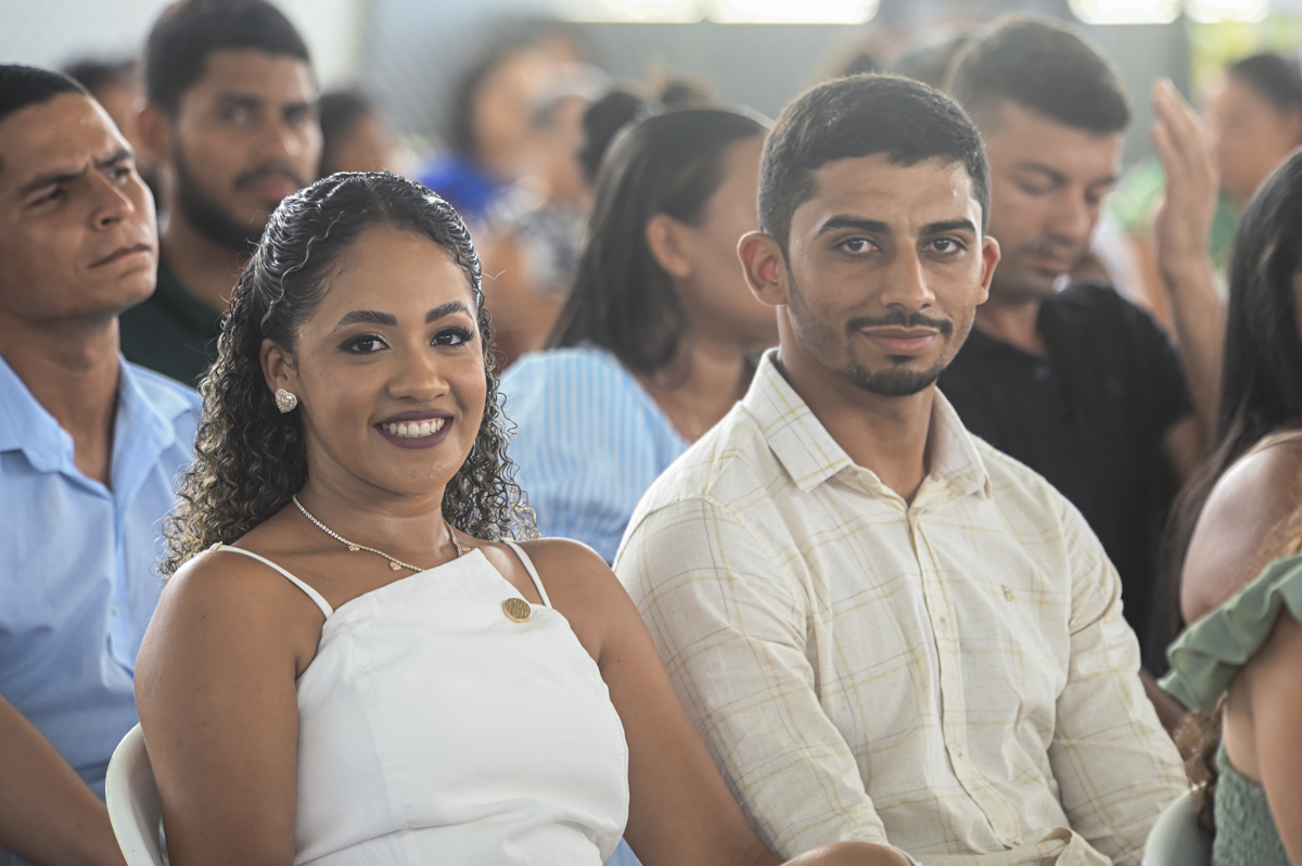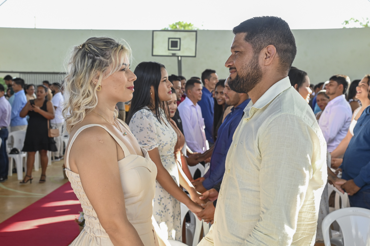 “Viver o resto da vida, se Deus permitir, até que a morte os separe”. É o desejo de Raquel Souza, de 25 anos, que acaba de oficializar a união com João Paulo Nobre, de 27. Após sete anos de relacionamento, o casal pôde realizar o sonho de casar ao participar do casamento coletivo promovido nesta quinta-feira, 6, às 15h, na Quadra Raimundo Bezerra Frota, em Marechal Thaumaturgo.