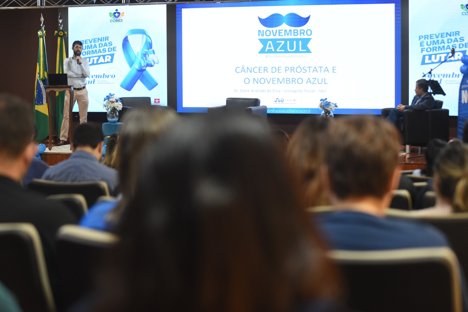Ao final, o especialista esclareceu dúvidas dos servidores, como “quando buscar ajuda?” e “a doença interfere na vida sexual?”. Com leveza e objetividade, desmistificou tabus e reforçou que o machismo é um dos principais obstáculos para a saúde masculina, pois muitos homens deixam de procurar atendimento por vergonha ou preconceito. O evento foi encerrado com o sorteio de souvenirs doados pela equipe da Cobes.