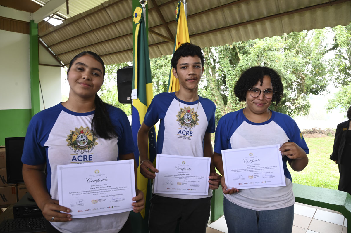 Participaram da solenidade ainda o secretário adjunto Educação, Tião Flores; o presidente da Câmara Municipal de Porto Acre, vereador Lenilson Baquer; a gestora da Escola Jader Saraiva Machado, professora Suzi Almeida; a representante do Núcleo de Educação do município, Murceia Santos; além de estudantes e familiares dos estudantes.