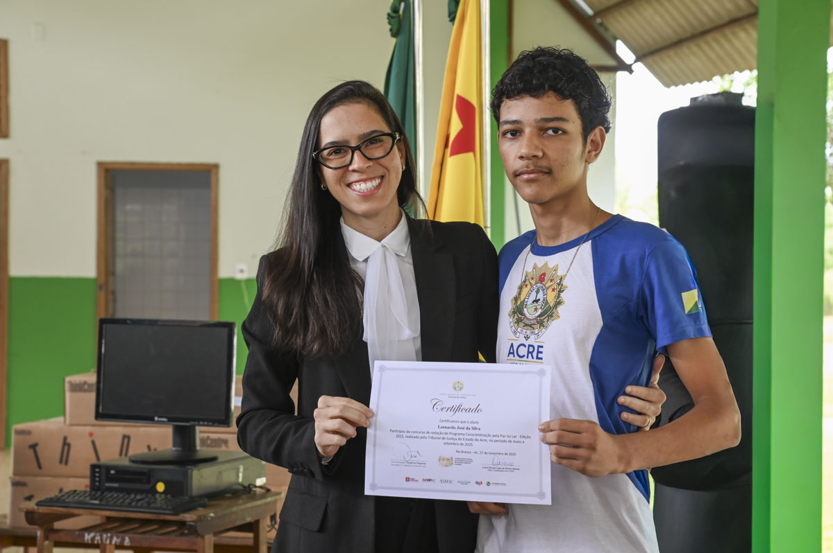 A ação integrou a programação da 31ª Semana Justiça pela Paz em Casa e da campanha 21 Dias de Ativismo pelo Fim da Violência contra a Mulher, além de marcar simbolicamente o encerramento desta edição do programa no interior do estado. Durante o evento, foram entregues computadores aos vencedores, equipamentos doados pela Associação dos Magistrados do Acre (Asmac).