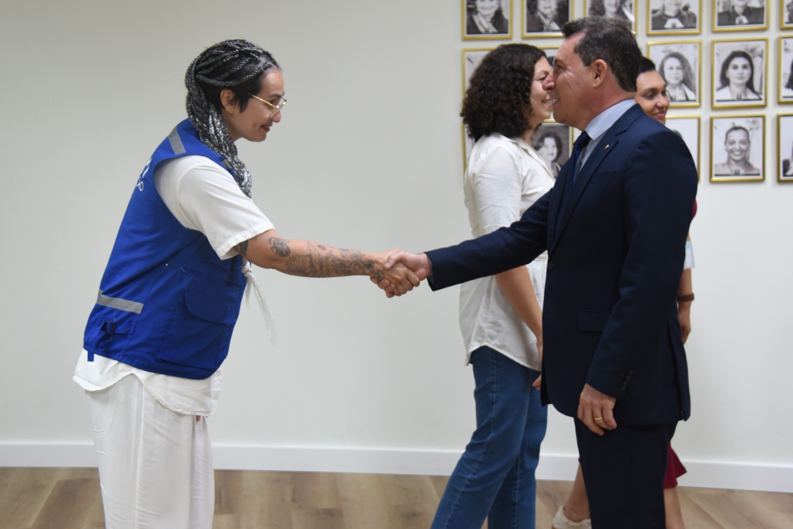 O encontro entre representantes do TJAC, da OIM e da Secretaria de Assistência Social e Direitos Humanos do Estado, que aconteceu nesta segunda-feira, 3, na sede do TJAC