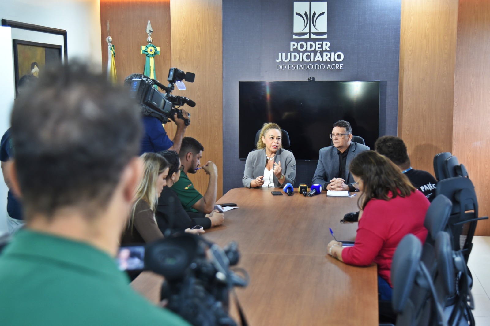 Após sanar as dúvidas da imprensa local, também foram registrados agradecimentos ao Tribunal Regional Eleitoral (TRE), ao governo do Acre e prefeituras, bem como aos 1.180 servidoras e servidores que foram treinados para atuar na eleição, reforçando assim a força da rede colaborativa e mobilização de esforços para a garantia de cidadania.