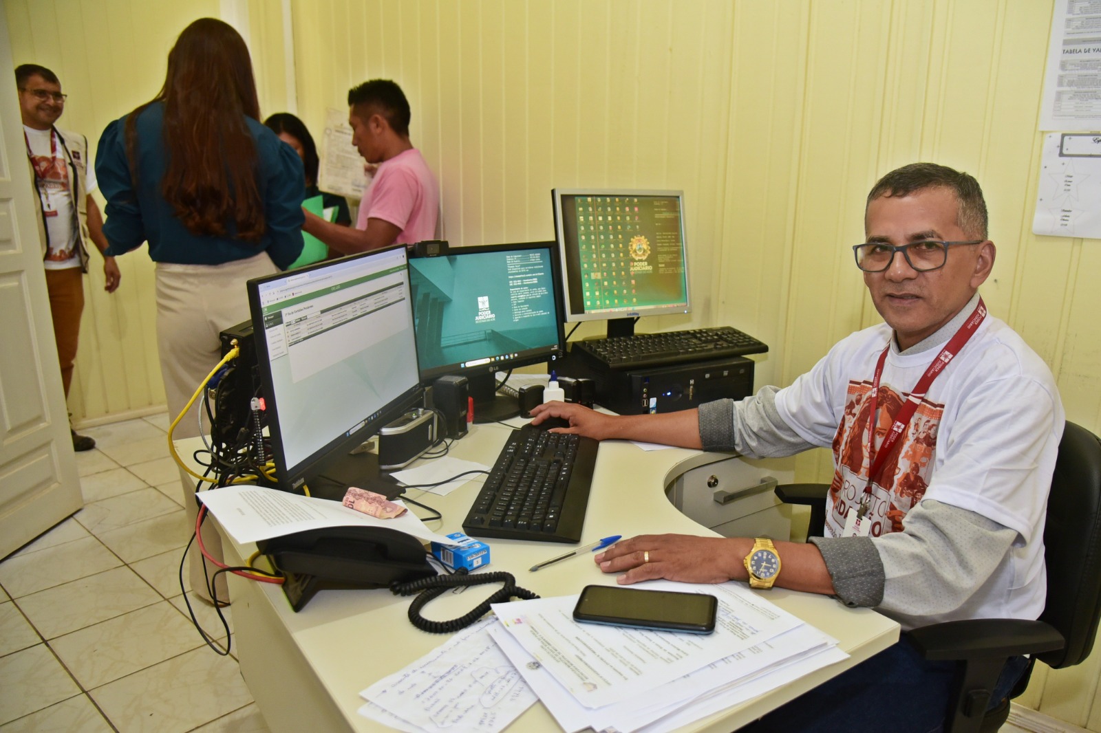 O servidor do TJAC, Clodomiro Neves, fez exatamente isso ao reforçar a importância de eleitoras e eleitores cadastrarem a biometria. “As pessoas simples não vão saber o que é biometria, então eu disse: ‘É preciso regularizar o título de eleitor para não ter o CPF bloqueado e não perder o benefício’”, comentou Neves. Ele entrou na Justiça como técnico de som nas primeiras edições do Projeto Cidadão e, de lá para cá, já são quase 30 anos de atuação”.