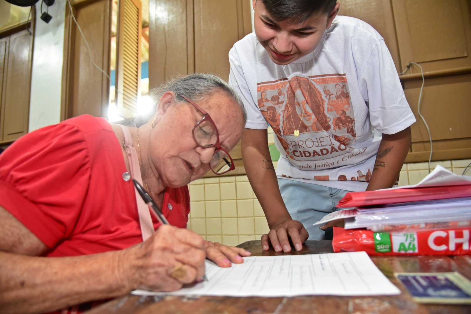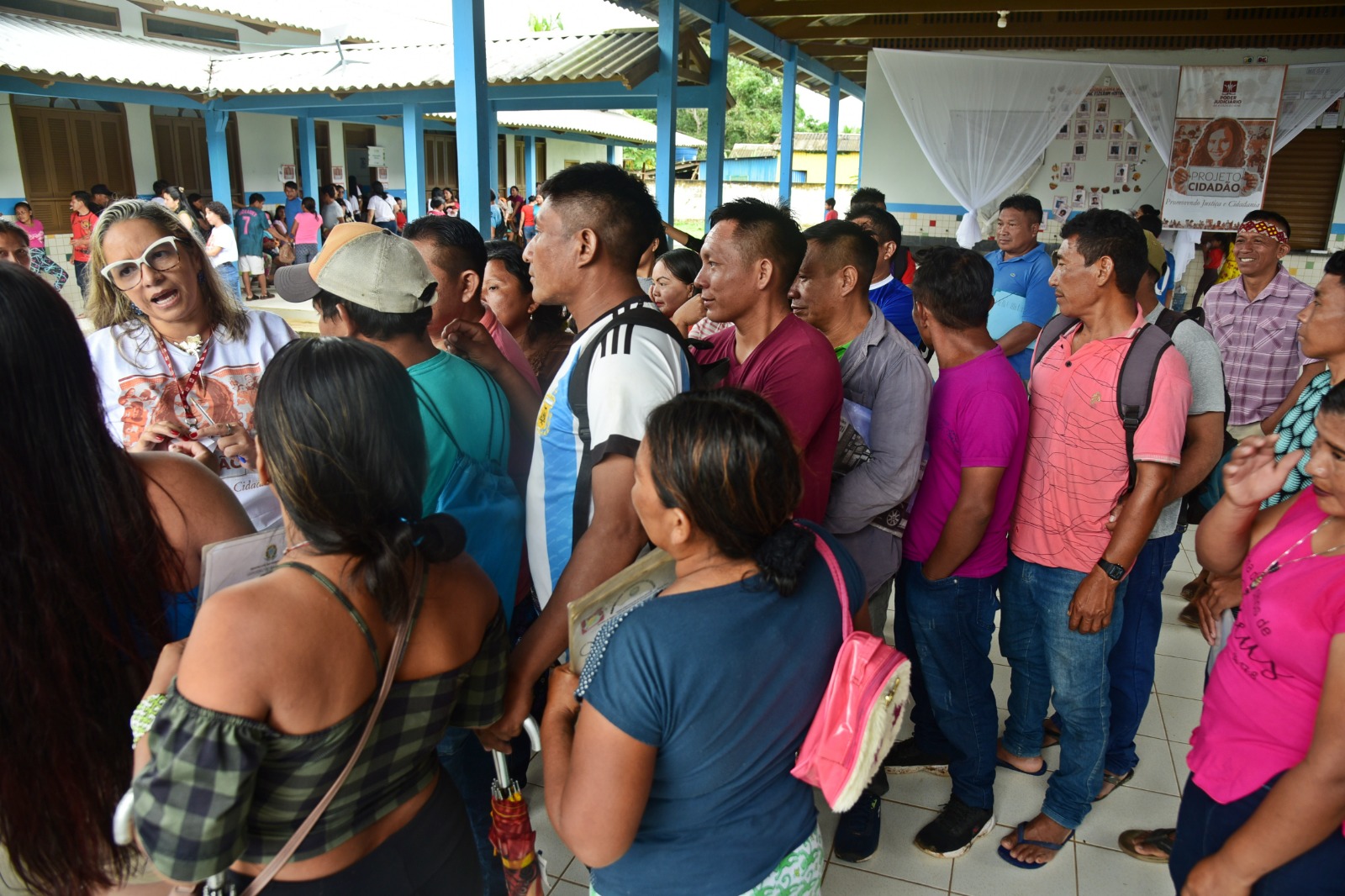 Os dois foram ao Projeto Cidadão para buscar o documento da terra onde vivem. “É difícil chegar aqui, mas eu gosto, gosto muito. Estamos aqui há 20 anos, desde que saímos de Sena Madureira. A gente vive tranquilo. E hoje vim só tirar o documento e o título da terra. Ter os documentos é dignidade”, comentou o idoso, ao lado da esposa.