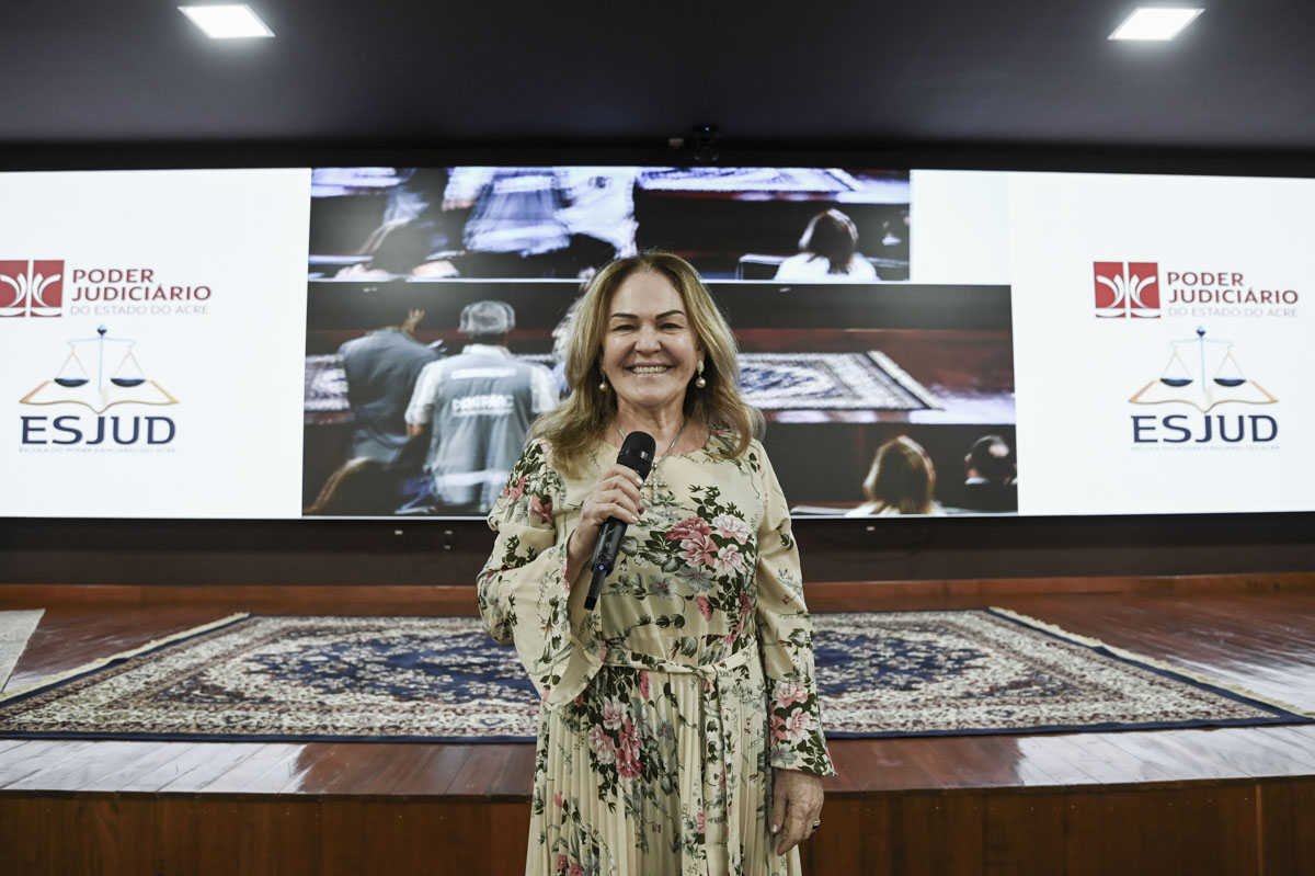A presidente em exercício do TJAC, desembargadora Regina Ferrari, ressaltou a importância de formações na área que estimulem a reflexão e o compartilhamento de experiências e que, como consequência, aperfeiçoem os serviços prestados. “O conhecimento só edifica; a escola é o celeiro do conhecimento. Nosso coração está cheio de gratidão por todo esse aprendizado”, disse Ferrari.