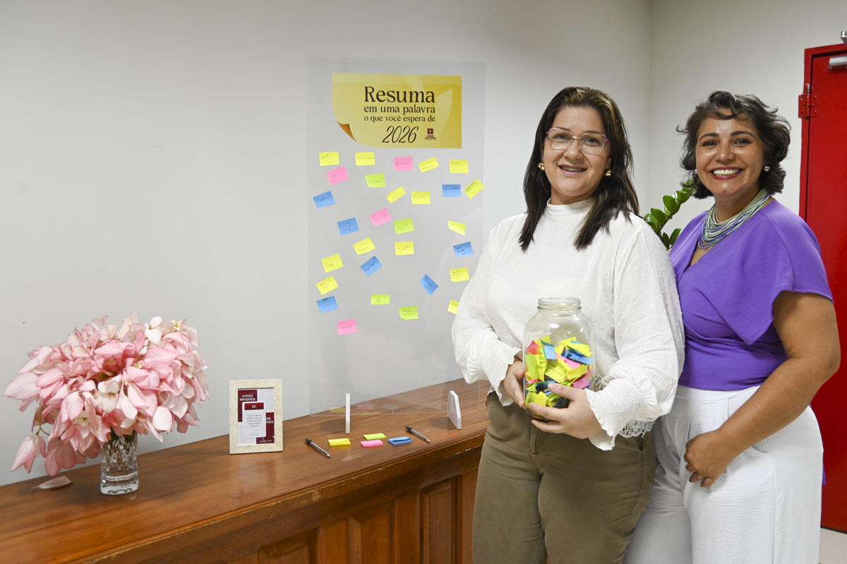 Engajado nesse cuidado, o Tribunal de Justiça do Acre (TJAC), por meio das secretarias administrativas, preparou uma acolhida especial para as equipes que retornaram do recesso forense nesta quarta-feira, 7. Nas unidades da capital, foi preparado um mural onde as pessoas podiam escrever em post-it coloridos uma palavra sobre a expectativa para 2026 e, ainda, foi colocada uma frase ressaltando a importância do bom humor, leveza e “alto astral” nos ambientes que convivemos.