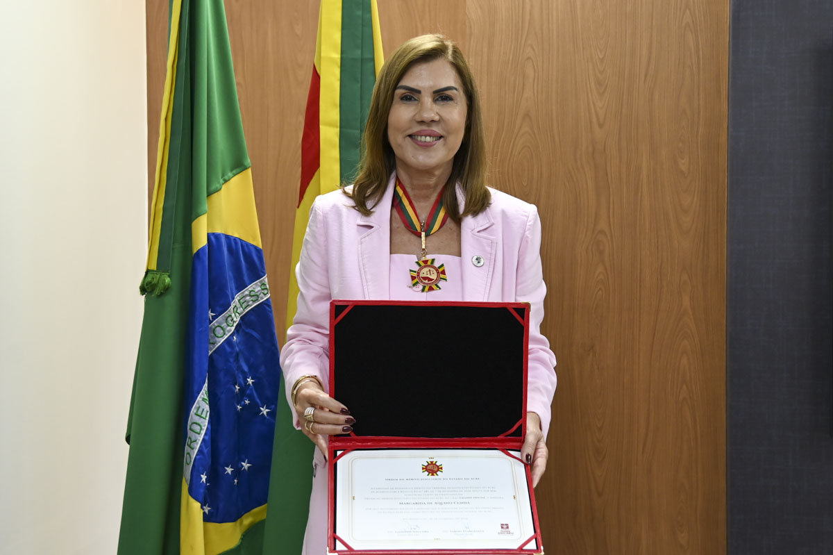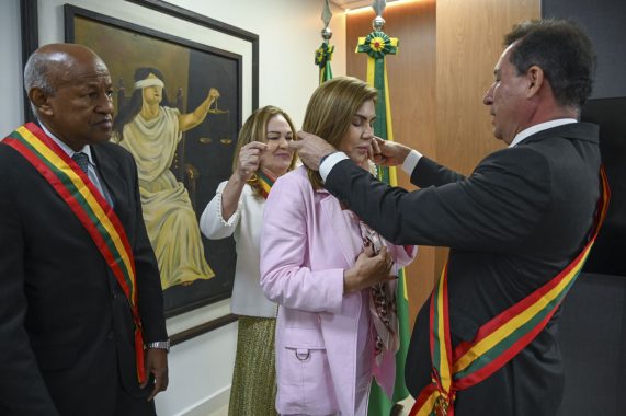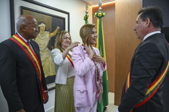 Por fim, o presidente do TJAC concedeu à reitora, Guida Aquino, a Ordem do Mérito Judiciário do Acre, uma homenagem por sua notável colaboração para o engrandecimento da Justiça acreana. A honraria foi conferida em 2023, por ocasião dos 60 anos de instalação do Tribunal de Justiça, entretanto, naquela oportunidade, a professora não pôde comparecer ao evento.