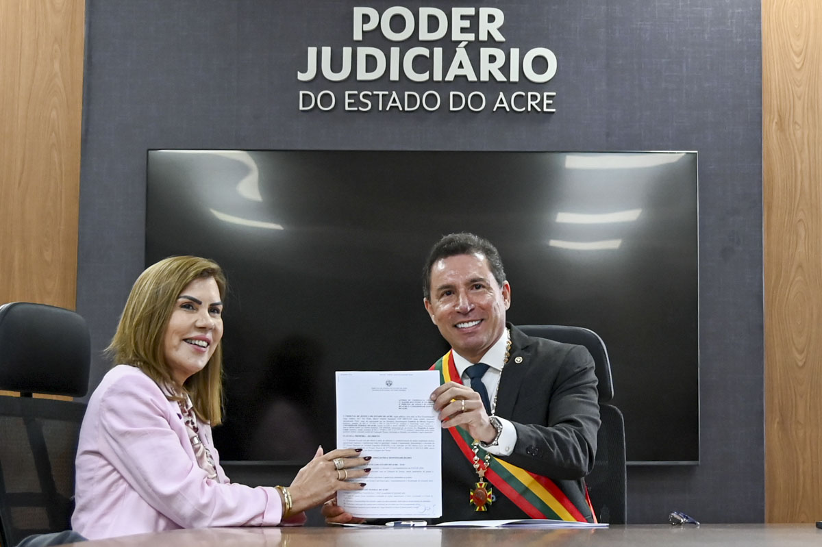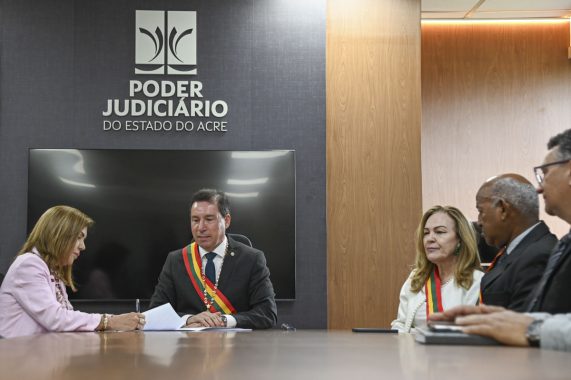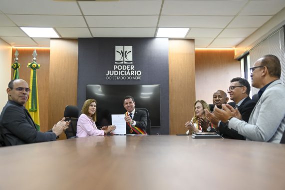 Em seguida, o desembargador-presidente recebeu o prefeito de Rio Branco, Tião Bocalom. Na ocasião, foi assinado o Termo de Cooperação entre o Poder Judiciário e a Prefeitura. Confirmou-se a parceria institucional na realização do 57º Fonaje.