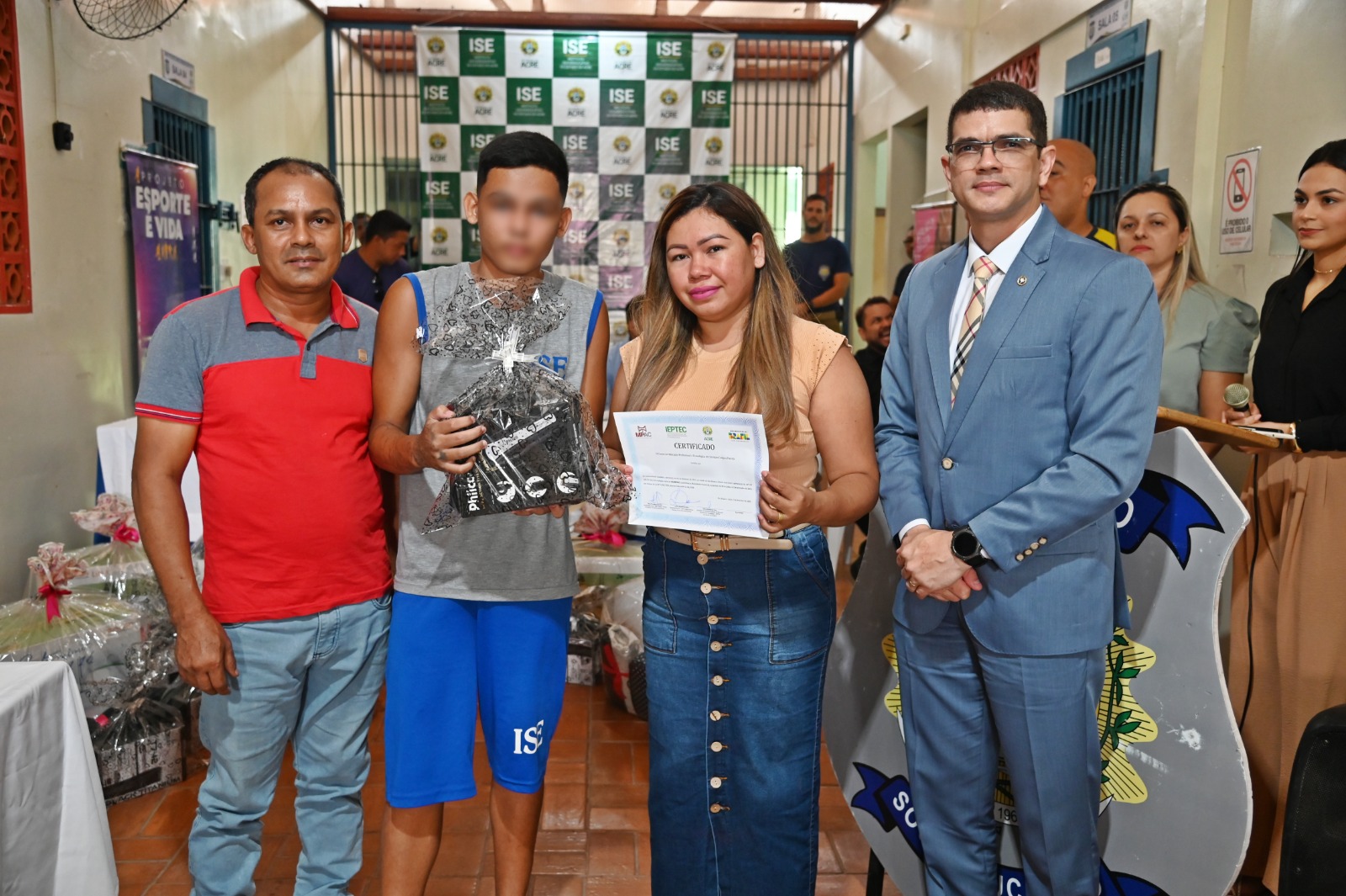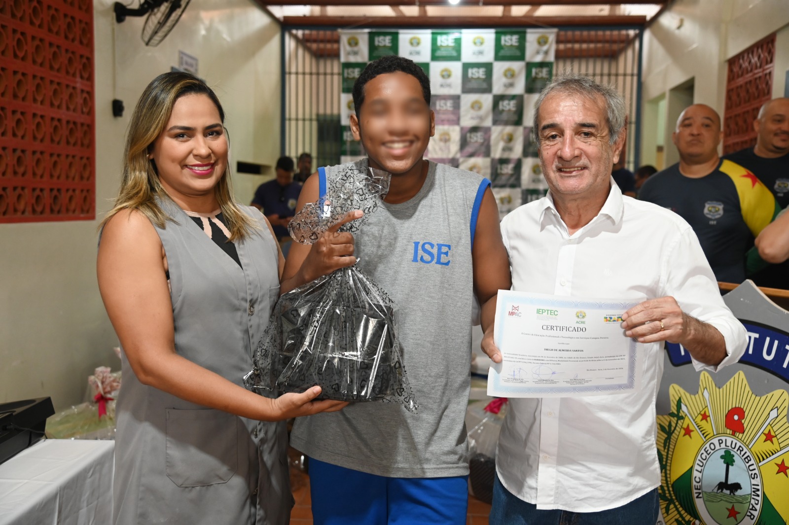 A solenidade contou com uma apresentação do coral e apresentação musical, protagonizada pelas socioeducandas. Em seguida, inaugurando as falas protocolares, o diretor operacional do Instituto Socioeducativo do Acre (ISE/AC) Maurício Pinheiro agradeceu as parcerias: “O ISE executa as medidas socioeducativas, mas quem faz o sistema socioeducativo no estado do Acre funcionar é o trabalho em rede. É o apoio do Poder Judiciário, do Ministério Público e tantos outros parceiros que trazem oportunidades para os nossos adolescentes. É muito satisfatório ver um egresso e saber que ele foi por um caminho diferente do que ele seguia antes de vir para o sistema”.