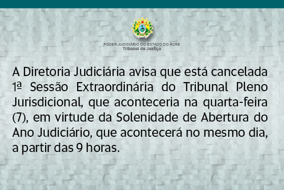 1ª Sessão Extraordinária do Tribunal Pleno Jurisdicional não será realizada na quarta-feira (7), em virtude da solenidade de Abertura do Ano Judiciário. (mais…)