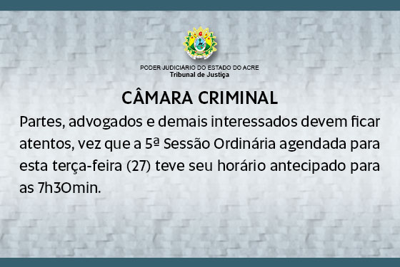 A Presidência da Segunda Câmara Cível do Tribunal de Justiça do Estado do Acre comunica às partes, advogados e demais interessados que a partir da Sessão Ordinária agendada para as 8h30min do dia 3 de abril de 2018, e ainda, conforme previsão contida no inciso I, § 4º, do art. 35, do RITJAC e inciso II, art. 936, do CPC, os requerimentos de preferência para sustentação oral deverão ser apresentados até o início da sessão de julgamento e, nestes, incluídos os processos apresentados em mesa.