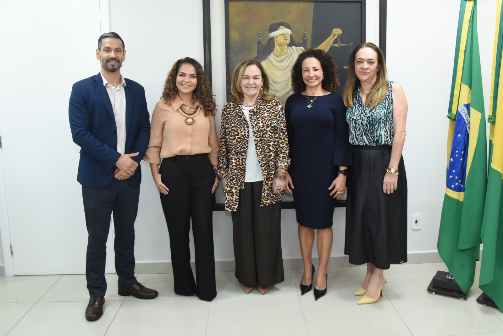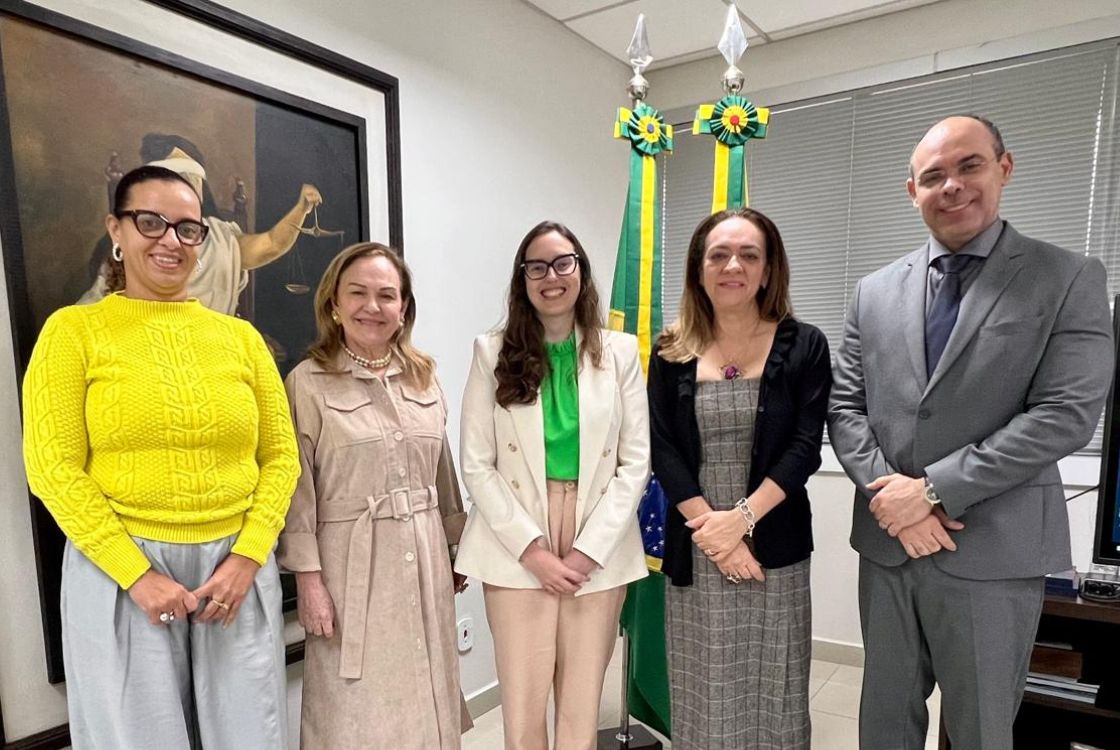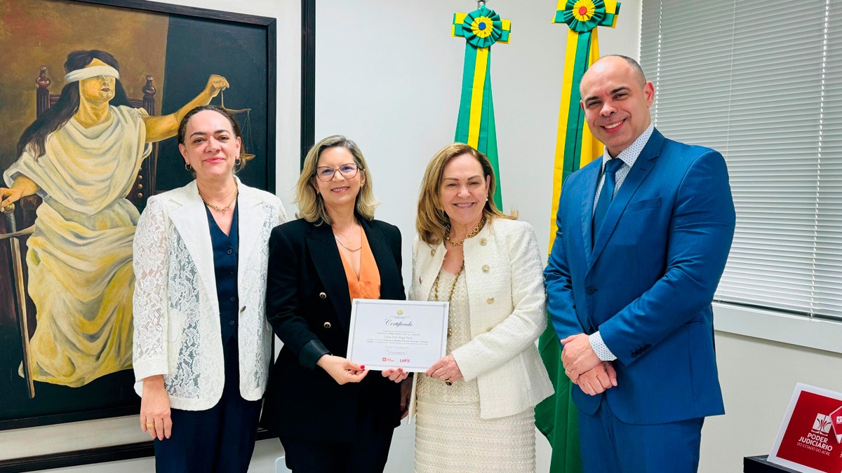A presidente do Tribunal de Justiça do Acre (TJAC), desembargadora Regina Ferrari, recebeu nesta quinta-feira, 25, as juízas Maria Rosinete dos Reis e Andréa Jane de Medeiros, que são auxiliares da ministra Cármen Lúcia, respectivamente, no Supremo Tribunal Federal (STF) e Tribunal Superior Eleitoral (TSE). A visita contou ainda com a presença do presidente da Associação dos Magistrados do Acre (Asmac), juiz de Direito Gilberto Matos e a juíza auxiliar da presidência do TJAC, Zenice Mota.