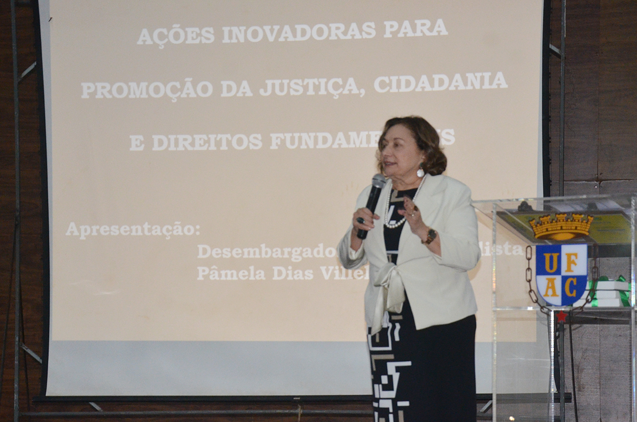 Ainda dentro do tema, a desembargadora apresentou as variadas ações sociais e de cidadania executadas pelo Tribunal de Justiça Acreano a exemplo do Projeto Cidadão, programa Justiça e Cidadania na Escola, programa Pai Presente, Núcleo Permanente de Métodos Consensuais de Soluções de Conflitos (Nupemec), as atividades relacionadas às práticas ambientais entre outras.