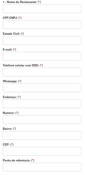 3º – Preencha com atenção todos os campos com os dados contra quem você quer reclamar: