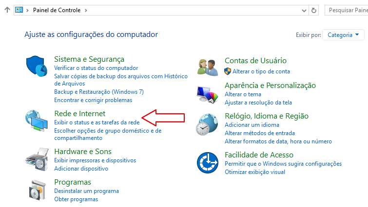 - Abrir o Painel de Controle, Clicar em em Rede e internet conforme a imagem abaixo;