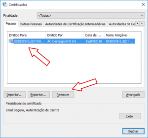 - Após será mostrada a janela de Certificados, com todos os certificados instalados no computador.