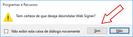 - Após vai abrir a Janela de Programas e Recursos, localizar e clicar com o botão direito do mouse em Web Signer, clicar com o botão esquerdo em Desinstalar.