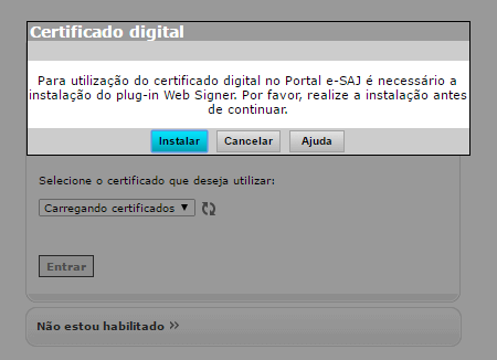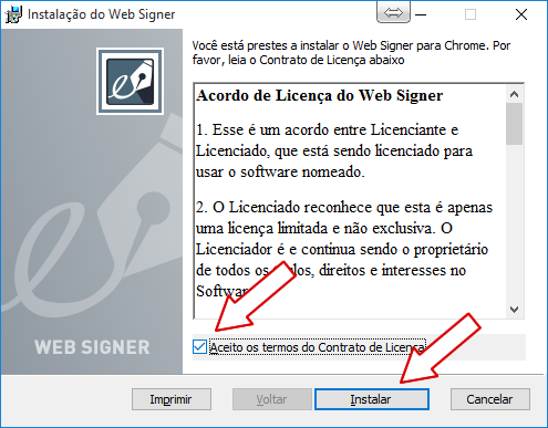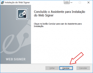 - Na sequencia vai aparecer a tela para instalação do Web Signer, conforme imagem abaixo.