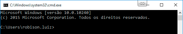 - Digitar:” CMD” e precionar a tecla Enter ou Clicar no botão OK; abrira uma janela preta com letras brancas conforme imagem abaixo.
