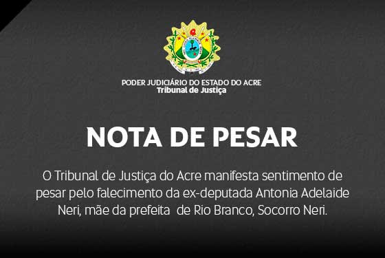 A desembargadora Cezarinete Angelim, em nome da Direção do Tribunal de Justiça do Acre, manifesta nesta quarta-feira (1º) sentimento de pesar pelo falecimento, aos 104 anos de idade, da senhora Lídia Deodato de Lima, mãe da promotora de Justiça aposentada Maria José Correia Lima e avó da servidora deste Poder, Maria do Socorro de Oliveira, […]