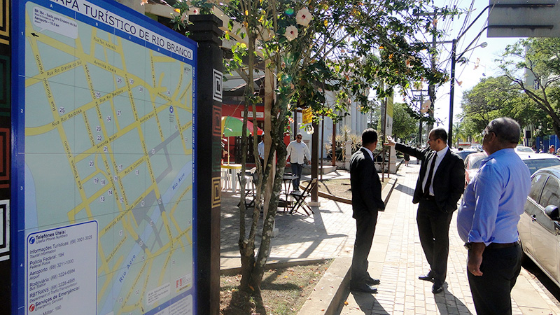 Após conversa inicial, as autoridades visitaram o entorno do Palácio da Justiça, onde a Prefeitura Municipal de Rio Branco (PMRB) tem realizado obras de manutenção e adequação.