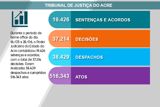 Do período de 16 de março a 28 de junho, por exemplo, Poder Judiciário do Acre contabilizou 19.426 sentenças e acórdão com um total de 37.214 decisões