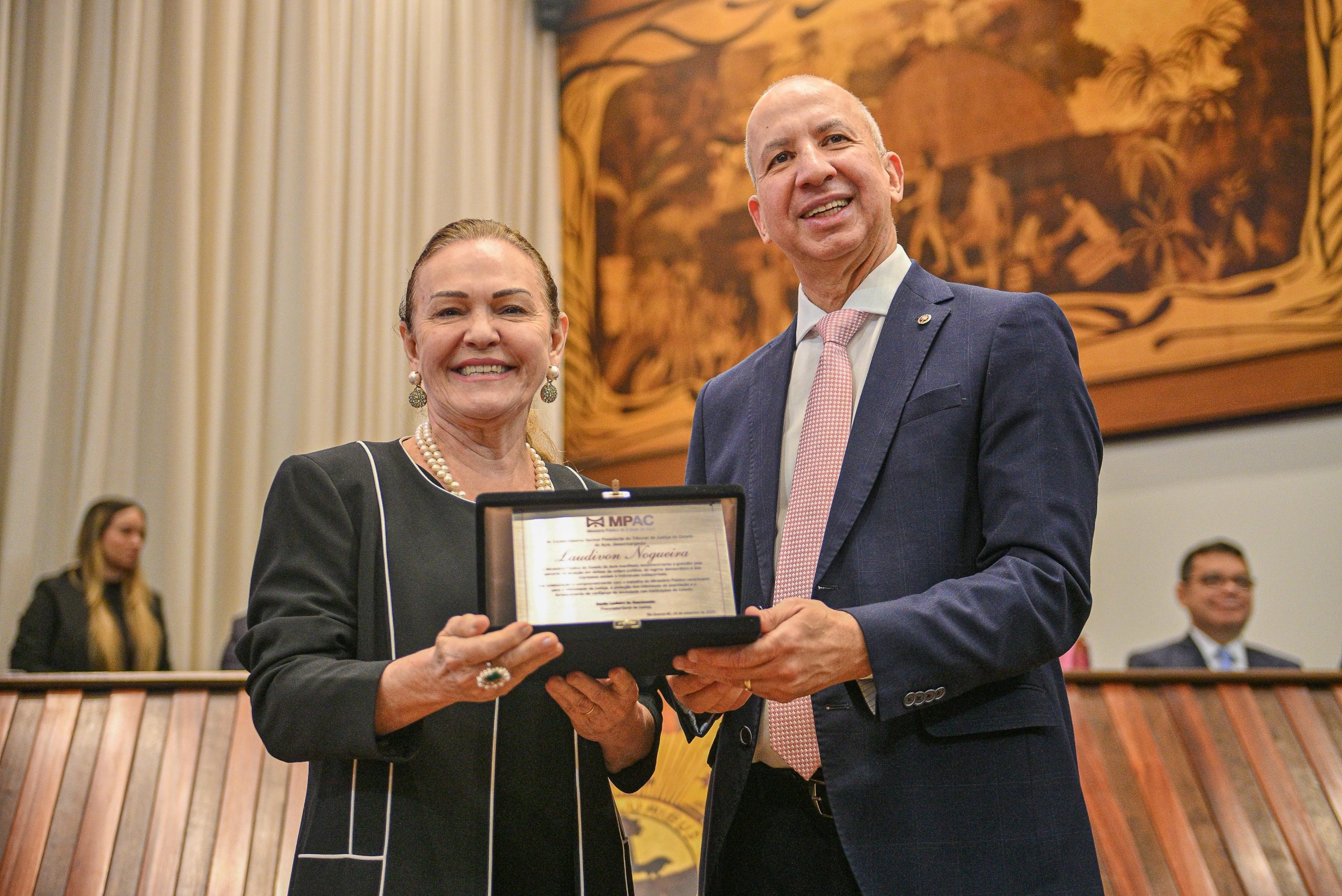 Presença da vice-presidente do TJAC na solenidade reforça a parceria histórica entre Judiciário e Ministério Público na defesa da cidadania e do regime democrático