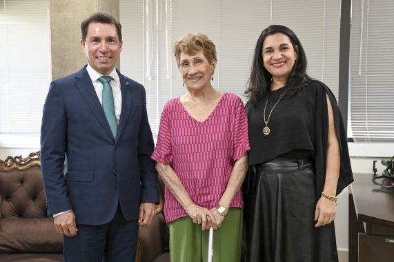 Servidora que foi a 1ª secretária judiciária do TJAC em 1963 visita presidente Laudivon Nogueira