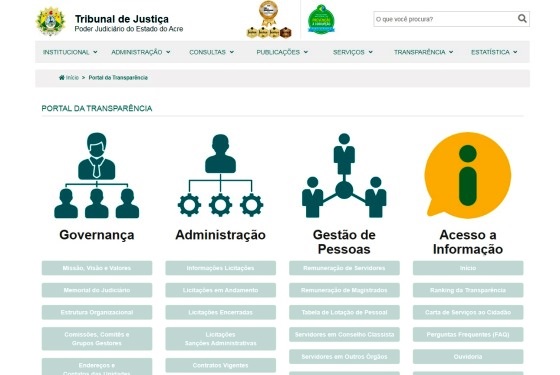 No portal da Transparência do Tribunal de Justiça do Acre (TJAC) é possível acessar diversas informações da gestão administrativa e de pessoas e também solicitar dados através da Lei de Acesso à Informação